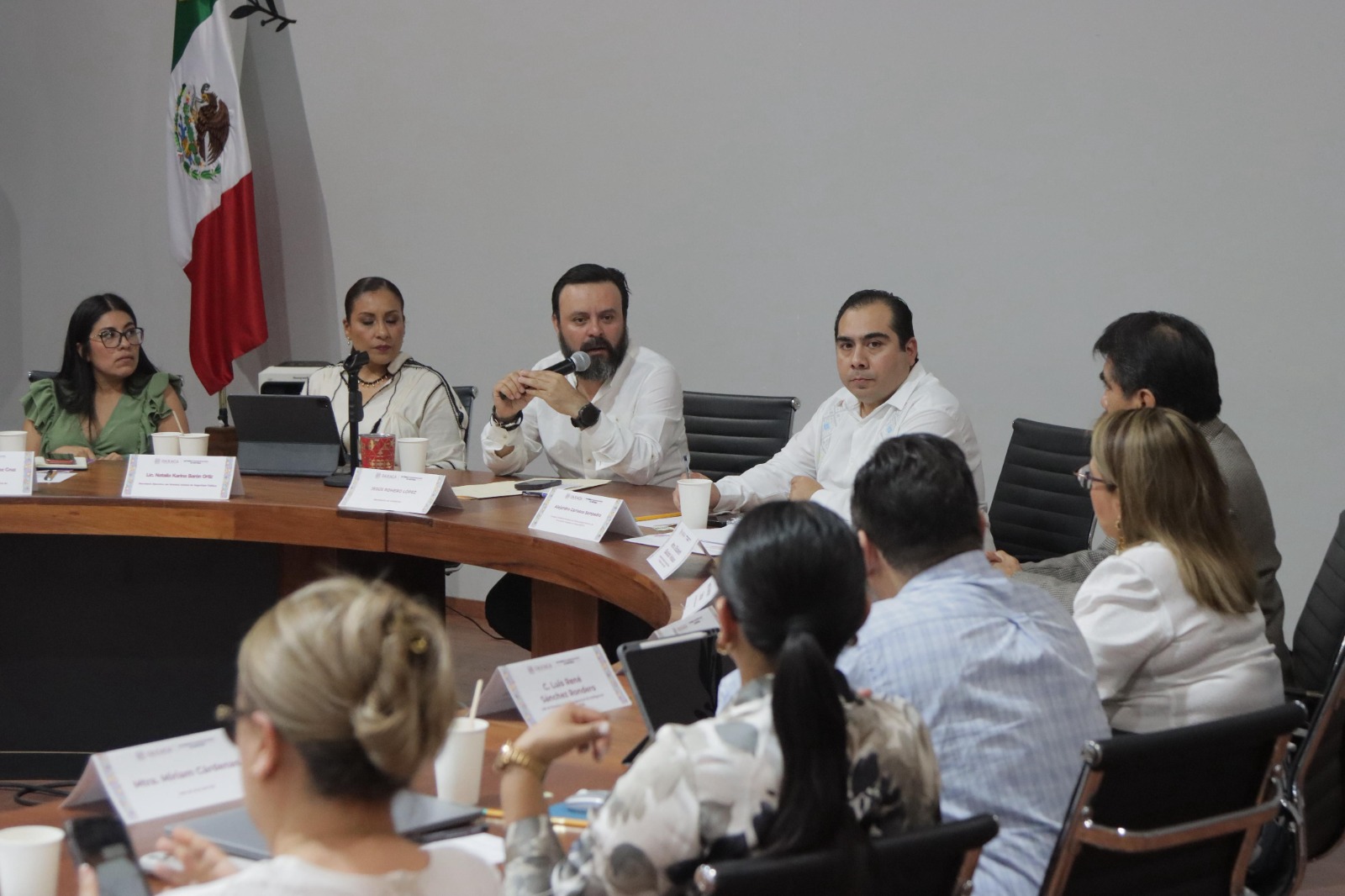 Asimismo, por el Instituto Nacional Electoral (INE), la Secretaría de Defensa Nacional (Sedena), la Guardia Nacional, la Secretaría de Gobernación (Segob), la Fiscalía General del Estado de Oaxaca (FGEO) y el Centro Nacional de Inteligencia (CNI).