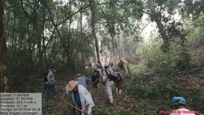 Los trabajos de combate, control y liquidación del fuego son realizados por la brigada oficial de combatientes con sede en Santa María Zacatepec, en coordinación con personas comuneras y elementos de la Guardia Nacional (GN).