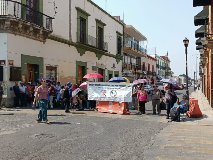 Trabajadores jubilados de la Sección 22 del Sindicato Nacional de Trabajadores de la Educación (SNTE) protestaron este lunes frente al edifico de la Sección 22 ubicada sobre la calle de Armenta y López en el centro de la ciudad capital.