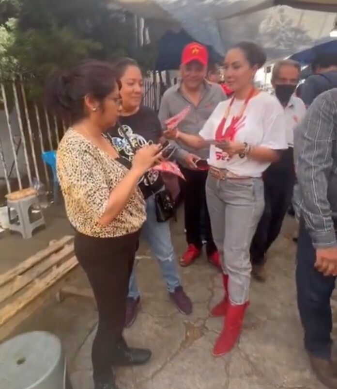La abanderada del PT junto a integrantes de la planilla conversaron con locatarios y consumidores sobre los proyectos que tienen para resolver diversos problemas de la capital del estado.