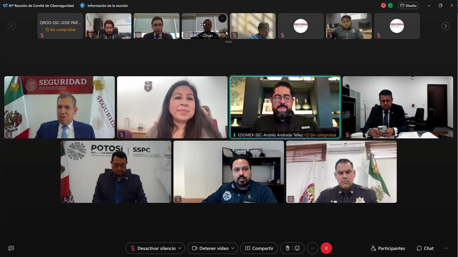 En representación de la SSPC participó el encargado de la Unidad de Policía Cibernética (UPC), Mauricio Valdés Muro en la reunión digital en la que se designó como secretario de Acuerdos del Comité al titular de Seguridad Pública del Estado de México, Andrés Andrade Téllez.