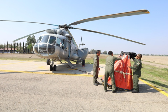 Oaxaca de Juárez, Oax. 22 de mayo de 2024. El Gobierno de Oaxaca a través de la Comisión Estatal Forestal (Coesfo) informa que este martes se sumó el helicóptero MI-17 de la Secretaría de la Defensa Nacional (Sedena) a las labores de combate en el incendio forestal suscitado en el municipio de Tepelmeme Villa de Morelos, en la región Mixteca, el cual se registra en una topografía compleja, lo que dificulta realizar trabajos terrestres.