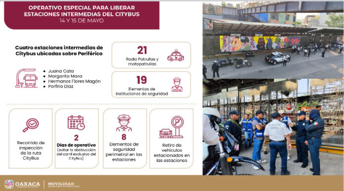 De igual forma, cuerpos de seguridad liberaron el perímetro vial y estaciones intermedias del Citybus, ubicadas en el Periférico esquina con Mier y Terán, denominadas: Juana Cata, Margarita Maza, Hermanos Flores Magón y Porfirio Díaz.