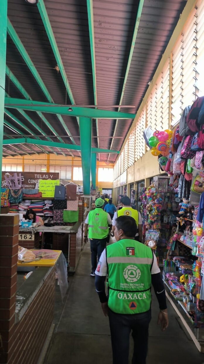 Oaxaca de Juárez, Oax. 31 mayo de 2024.- La Coordinación Estatal de Protección Civil y Gestión de Riesgos (CEPCyGR) inició recorridos de supervisión e información en mercados públicos, con el objetivo de garantizar la seguridad de quienes laboran y acuden a estos sitios.