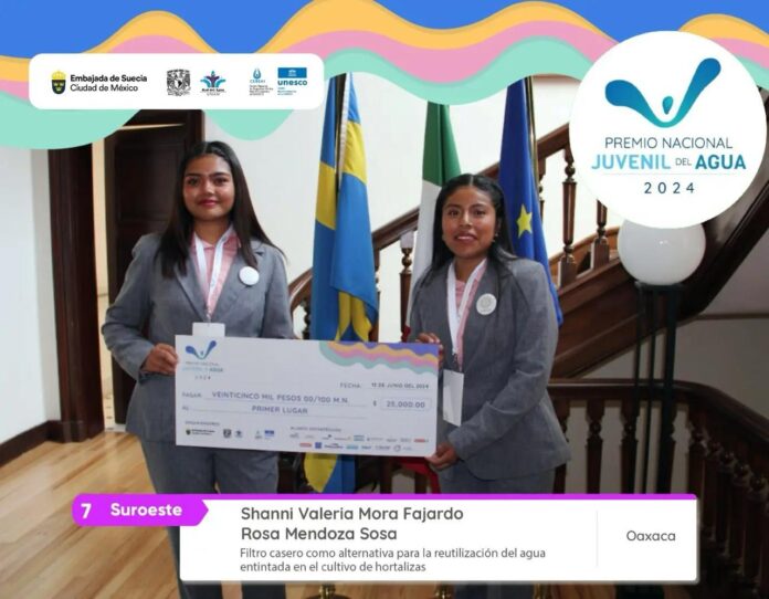Shanni Valeria Mora Fajardo y Rosa Mendoza Sosa, estudiantes del Colegio Superior para la Educación Integral Intercultural de Oaxaca (CSEIIO) obtuvieron el Premio Nacional Juvenil del Agua 2024 convocado por diversas instituciones educativas nacionales y organismos internacionales.