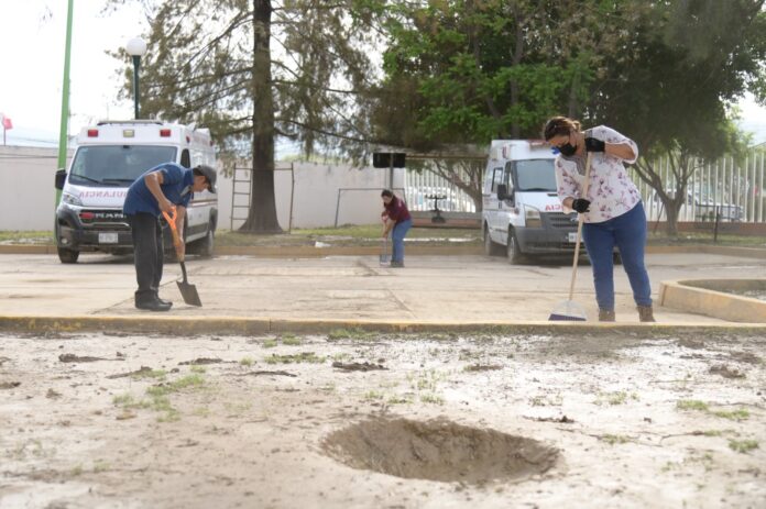 La actividad a cargo de la Secretaría de Bienestar, Tequio e Inclusión (Sebienti) se llevó a cabo con el objetivo de continuar con la eliminación de lodo y agua de los espacios internos del nosocomio, como pasillos, áreas de cirugía, urgencias, laboratorios, sanitarios, zonas administrativas, cocina y patios, a fin de garantizar un espacio seguro para la atención de niñas, niños y adolescentes.