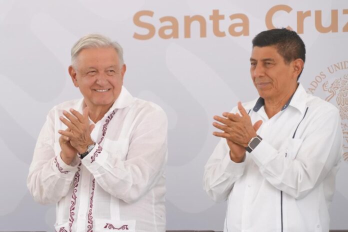 Santa Cruz Xoxocotlán, Oax. 23 de junio de 2024.- Ante el Presidente de la República Mexicana Andrés Manuel López Obrador, quien se encuentra de gira de trabajo por la entidad, el Gobernador del Estado Salomón Jara Cruz reconoció la entrega y patriotismo de la Guardia Nacional por contribuir a que Oaxaca sea una de las entidades más seguras del país.