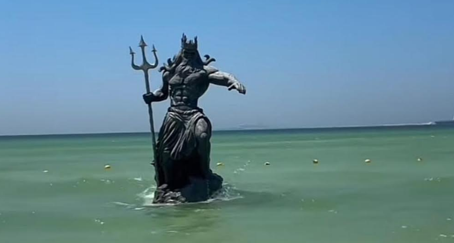 IV.1. El primero de julio de 2024, tuve conocimiento de que Juan Zacarías Curi, presidente municipal de Puerto Progreso, Yucatán, en el mes de mayo de este año, ordenó instalar una estatua de la deidad griega conocida como Poseidón esta ubicada en la zona conocida como Playón a cinco metros dentro del mar. Justo enfrente de la cancha de basquetbol color rosa. Pongo la ubicación 21°17’09″N 89°40’16″W. comparto una imagen tomada de la siguiente dirección: https://www.poresto.net/yucatan/2024/5/28/poseidon-dios-del-mar-llega-a-conquistar-a-progreso.html