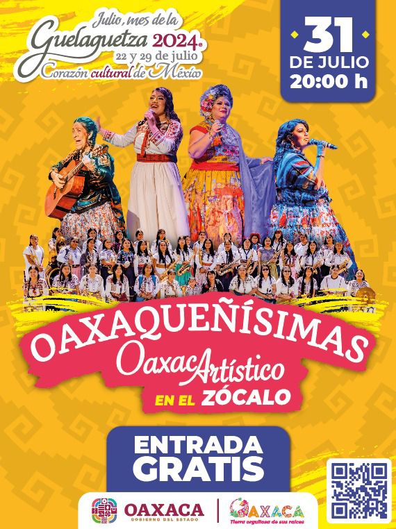 Destacan cuatro conciertos masivos, tres de ellos gratuitos en el emblemático Zócalo de Oaxaca donde se presentarán Grupo Cañaveral el 23 de julio; Los Caligaris, el 30 de julio y Oaxaqueñísimas, con las artistas Ana Díaz, Natalia Cruz, Silvia María y María Reyna, acompañadas de la Banda de Mujeres del Viento Florido, el 31 de julio.