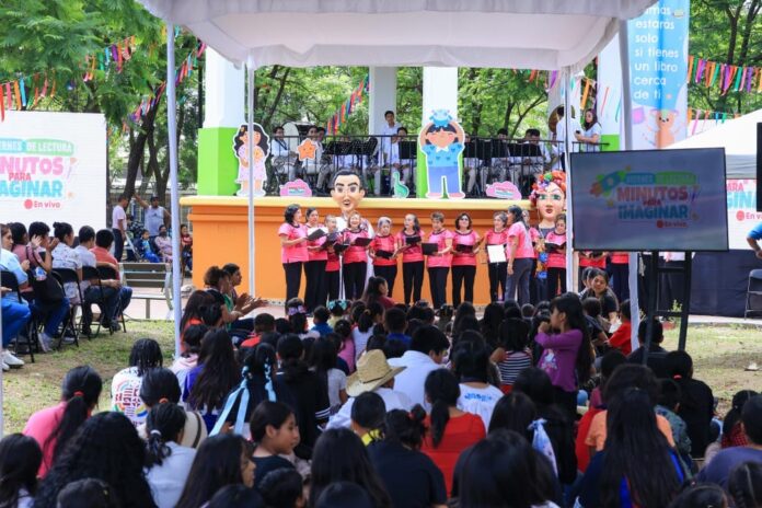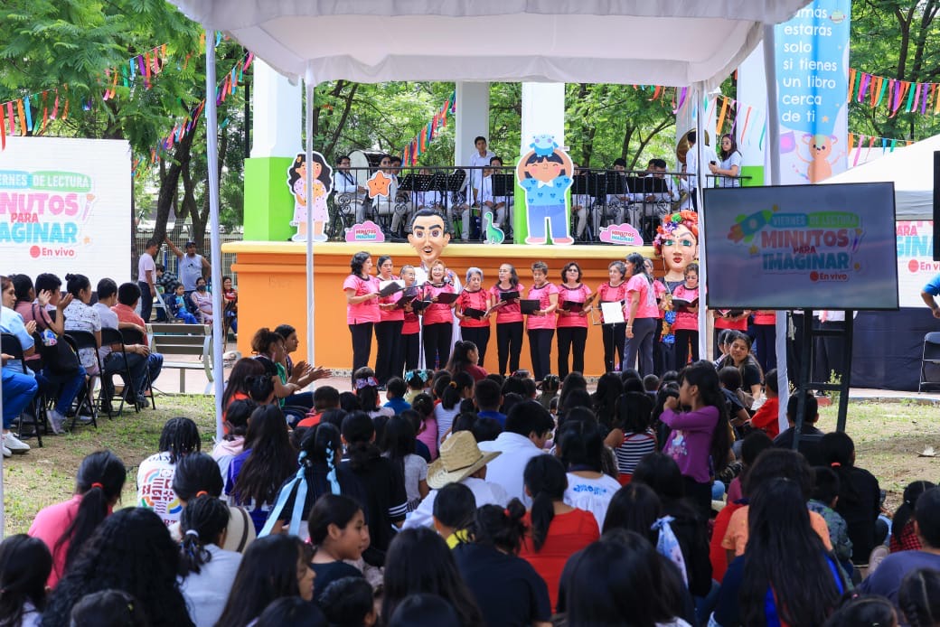 Oaxaca de Juárez, Oax., 13 de julio de 2024.- Las letras y la música se fusionaron en el Parque DIF, ubicado en la colonia Miguel Alemán de la capital oaxaqueña, para compartir momentos inolvidables con las niñas, niños y adolescentes, provenientes de diversos municipios conurbados y de espacios del organismo estatal durante la transmisión en vivo del Programa Minutos para Imaginar, el cual se implementa en las ocho regiones del estado.