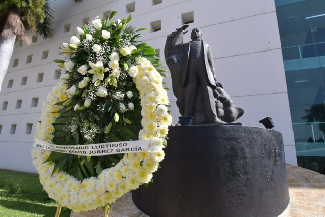 De igual manera, con motivo del aniversario luctuoso del Benemérito de las Américas, personal del Congreso de Oaxaca instaló este jueves una ofrenda floral a un costado del monumento a Juárez, en la explanada de la sede del Poder Legislativo.