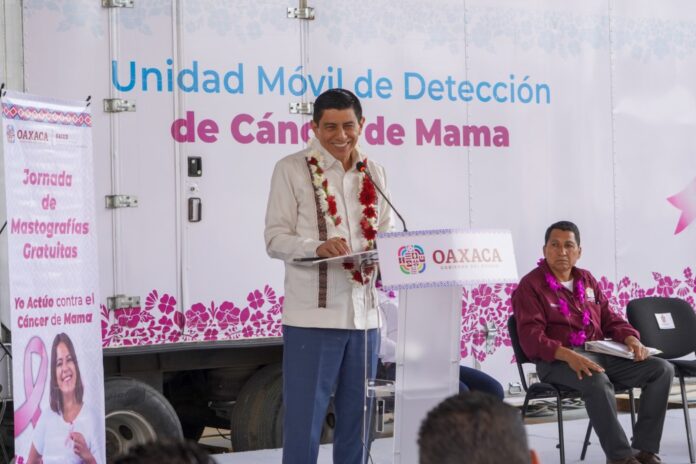 Toda vez que en México el cáncer de mama es la primera causa de muerte de las mujeres de 50 a 69 años de edad, el Gobernador Salomón Jara Cruz dio el banderazo de arranque de la “Jornada de Mastografía de los Servicios de Salud de Oaxaca”, que mediante seis Unidades Móviles recorrerán durante 6 meses los municipios del estado.