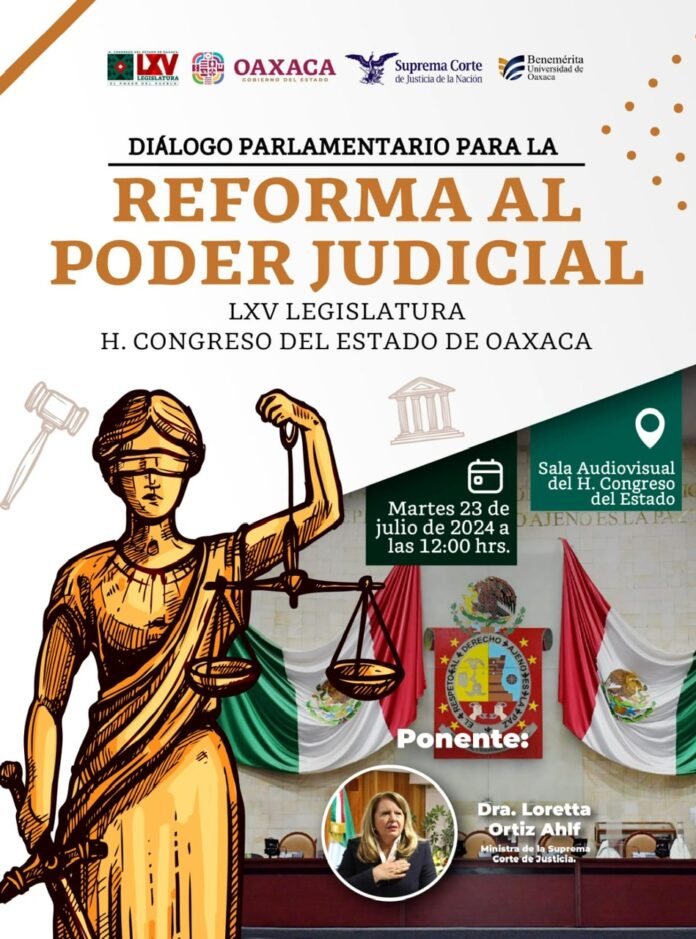San Raymundo Jalpan, Oax. 20 de julio de 2024.- Con la participación de la ministra de la Suprema Corte de Justicia de la Nación, Loretta Ortiz Ahlf, y de autoridades estatales en la materia, se realizará en el Congreso de Oaxaca el encuentro para dialogar acerca de la propuesta de reforma al Poder Judicial.