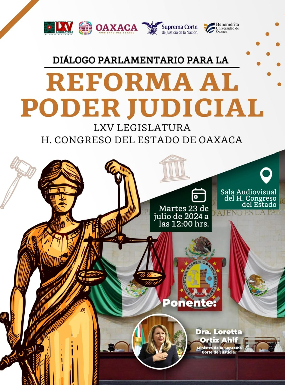 En este encuentro participarán la ministra de la Suprema Corte de Justicia de la Nación, Loretta Ortiz Ahlf; el consejero jurídico del Gobierno del Estado, Geovany Vásquez Sagrero; el rector de la Benemérita Universidad de Oaxaca, David Martínez.