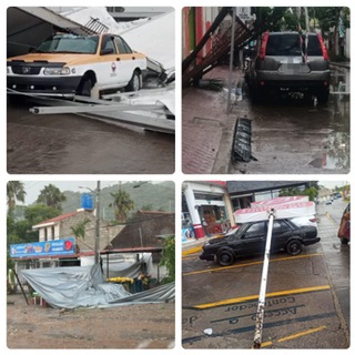 Primeros reportes señalan que en la colonia Aviación en Huajuapan, la estructura y techado del recinto ferial cayó sobre una camioneta y un taxi local debido a la fuerza de la lluvia, el viento y el granizo.