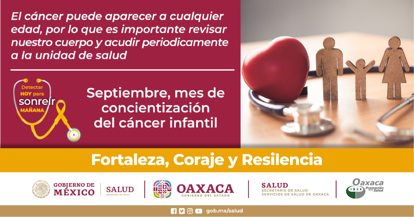 Con motivo de “Septiembre, mes de la Concientización del Cáncer Infantil”, Servicios de Salud de Oaxaca (SSO) centra sus actividades para enfatizar que un diagnóstico y tratamiento oportuno, son clave para mejorar las posibilidades de supervivencia de las niñas, niños y adolescentes.