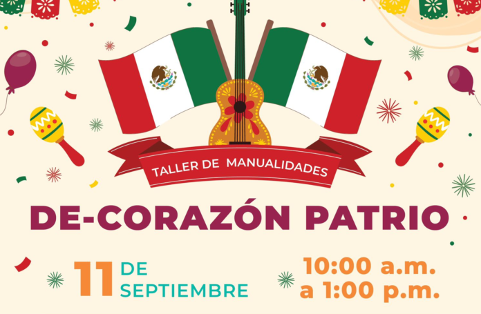 El taller de manualidades De-corazón patrio, se impartirá en el Bosque del Deporte del Parque Ciudad de las Canteras, el miércoles 11 de septiembre de las 10:00 a 13:00 horas. Esta actividad está dirigida a personas mayores de 18 años.