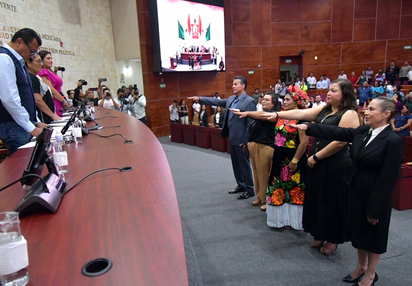 Con fundamento en el artículo 26 de la Ley Orgánica del Poder Legislativo de Oaxaca, la Presidencia de la Mesa Directiva tomó la protesta de ley correspondiente a las legisladoras y el legislador quienes se integran al Congreso local a partir de este miércoles.