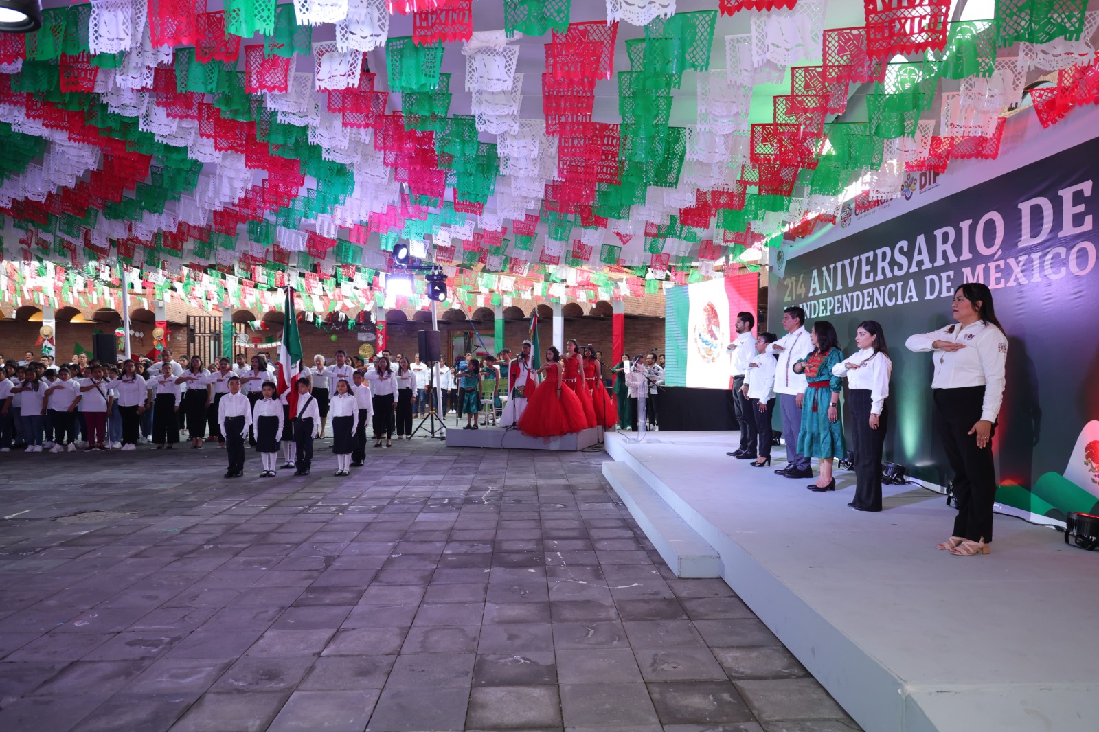 Niñas, niños, adolescentes y residentes de los Centros de Asistencia Social (CAS) disfrutaron de una noche mexicana junto al Gobernador del Estado, Salomón Jara Cruz y la Presidenta Honoraria del Sistema para el Desarrollo Integral de la Familia (DIF) Oaxaca, Irma Bolaños Quijano, en la que recordaron a las heroínas y héroes que patria y libertad al pueblo de México.