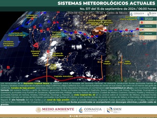 De acuerdo con el pronóstico del tiempo emitido por la Comisión Nacional del Agua (Conagua), este fenómeno natural en combinación con la entrada de aire húmedo y cálido del Océano Pacífico, mantendrá tormentas aisladas localmente fuertes asociadas con actividad eléctrica y rachas de viento especialmente en zonas montañosas de la Sierra Sur, Sierra de Juárez y Mixteca.