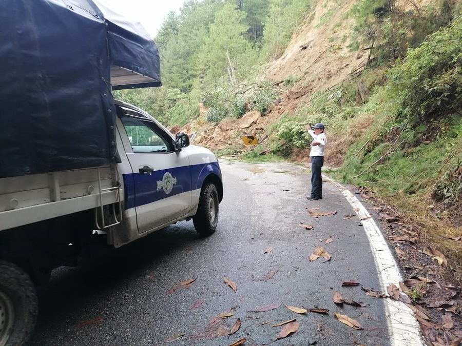 A la altura del kilómetro 40, se presentó caídas de piedras, árboles, postes y señales de tránsito, por lo que elementos de esta corporación abanderaron el lugar para que la maquinaria realizara el retiro del escombro. A partir de las 9:45 horas de este lunes 30 de septiembre, se encuentra habilitado un carril para la circulación.
