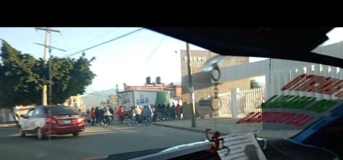 Con total impunidad estudiantes de la Escuela Normal de Educación Preescolar de Oaxaca (ENEPO) retienen y saquean vehículos de empresa a transnacionales en al avenida Guadalupe Hinojosa del municipio de Xoxocotlán.