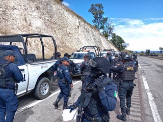Oaxaca de Juárez, Oax. 28 de octubre de 2024. Elementos de la Policía Estatal detuvieron a cinco hombres y dos mujeres por presuntamente interferir el tráfico en inmediaciones de la Plaza de Cobro número 79 ubicada en el kilómetro 222 de la carretera de cuota 135-D, Huitzo, perteneciente a Caminos y Puentes Federales (Capufe).