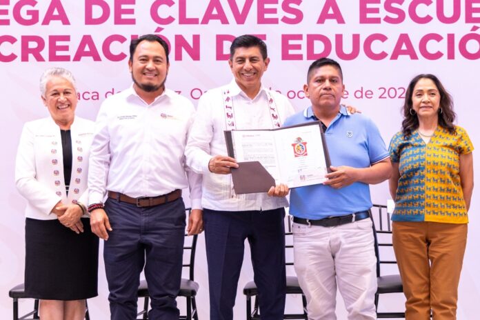El Gobernador del Estado Salomón Jara Cruz entregó 40 claves a escuelas de Nueva Creación de Educación Básica, para beneficiar al alumnado oaxaqueño de las ocho regiones.