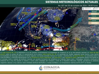 De acuerdo con el pronóstico del tiempo emitido por la Comisión Nacional del Agua (Conagua), este fenómeno meteorológico será provocado por la onda tropical número 29 que estará de salida con rumbo a Guerrero.