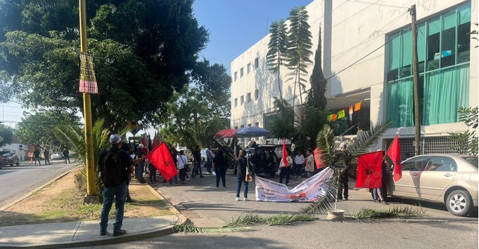 Con un tendedero de denuncias, los manifestantes cerraron la Heroica Escuela Naval Militar de la colonia Reforma, en ambos sentidos de circulación.