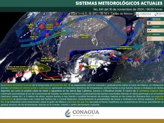 De acuerdo con el pronóstico del tiempo emitido por la Comisión Nacional del Agua (Conagua), el frente frío se extenderá como estacionario sobre el Mar Caribe y la masa de aire frío que le da impulso comenzará a modificar sus características térmicas, propiciando estas condiciones atmosféricas.
