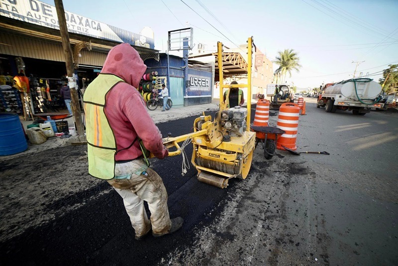 El Gobierno de Oaxaca trabaja como nunca antes para garantizar el bienestar de todas y todos, por ello realiza el bacheo y reencarpetamiento de calles y avenidas de la capital del estado y municipios conurbados.