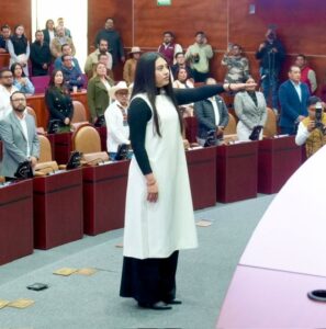 San Raymundo Jalpan, Oax. 26 de noviembre de 2024.- Al viejo estilo del priismo, en Oaxaca, el Movimiento de Regeneración Nacional (@MorenaOaxaca1 ), este martes, asumió la diputación local Jimena Yamil Arroyo Juárez en sustitución de su tía, Lizett Arroyo Rodríguez.