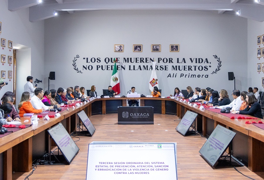Oaxaca de Juárez, Oax. 26 de noviembre de 2024.- El Gobernador Salomón Jara Cruz encabezó la instalación de la Tercera Sesión Ordinaria del Sistema Estatal de Prevención, Atención, Sanción y Erradicación de la Violencia de Género contra las Mujeres, que da certeza a las acciones que se impulsan a favor de las oaxaqueñas.