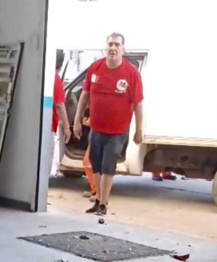 En video se observa la discusión y posterior agresión contra una persona que viste uniforme en color naranja. Uno de los sujetos lo bajó a golpes de la unidad particular.