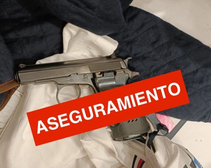 El arma de fuego tipo escuadra, con número de serie 146195 y un cargador abastecido de 12 cartuchos útiles calibre 380; se localizó en el área de probadores de la sección de caballeros.