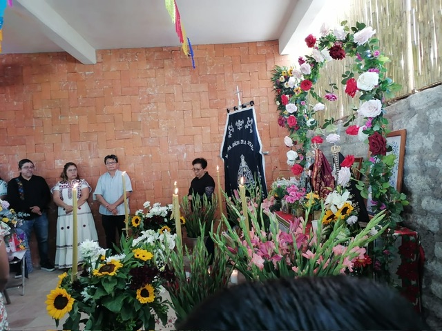 La maestra María Elena y el doctor FernandoGaleana pudieron constatar con nosotros esta forma de interacción comunitaria, definida por el autor costumbrista Rogelio Barriga Rivas (Tlacolula de Matamoros1912- ciudad de México1961), en La Mayordomía, (reedición del Instituto de Investigaciones en Humanidades con estudio introductorio de Francisco José Ruiz Cervantes) como una serie de festividades que durante el año se organiza en homenaje a los principales santos de los diversos altares católicos, “mayordomía que se compone de actos religiosos, -maitines, misa solemne, procesión-, y profanos, – suculento almuerzo, comida exquisita y abundante, baile al compás de sones regionales, borrachera con mezcal y tepache, fuegos artificiales –“.