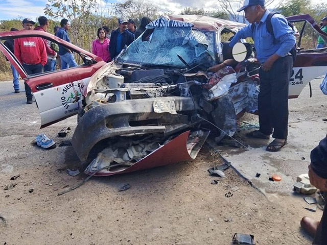 Un taxi colectivo del sitio Sierra Sur marcado con el número económico 04-724 y una camioneta Nissan repartidora de materiales de construcción chocaron sobre la carretera federal 175 en cercanías del municipio de Santo Tomás Tamazulapan.