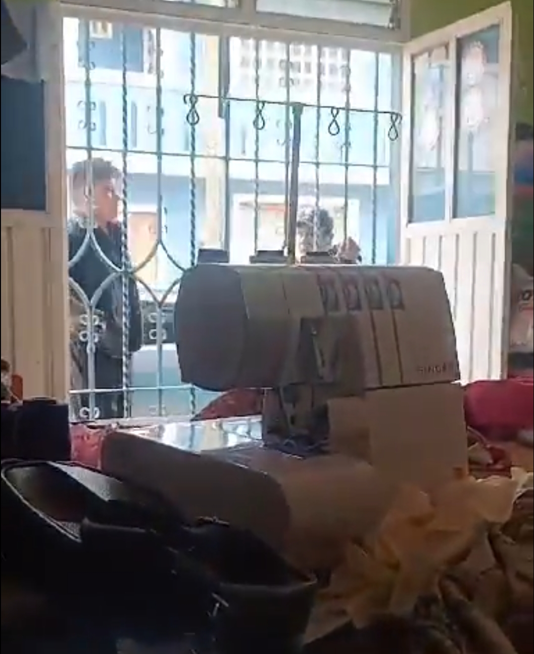 Presuntos cobradores de “Gota a gota” dispararon contra las mujeres que desde el interior de su taller corrían a los dos amenazantes sujetos que al ser grabados se retiraron a bordo de un automóvil estacionado frente al local de costura