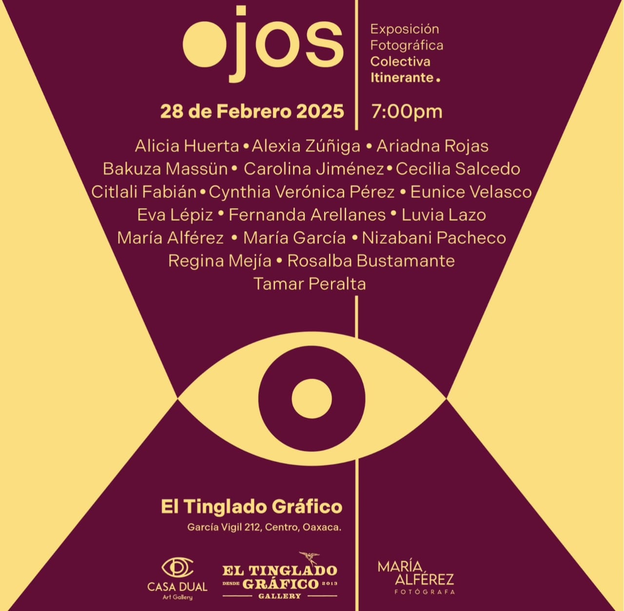 El Tinglado Gráfico se complace en invitar a la inauguración de la exposición fotográfica colectiva Ojos, una muestra que reúne por primera vez el trabajo de 18 fotógrafas nacidas o radicadas en Oaxaca, incluyendo artistas de alto renombre nacional e internacional junto a nuevas voces de la fotografía contemporánea.
