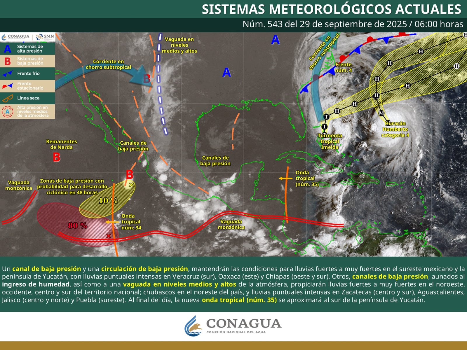 Oaxaca de Juárez, Oax. 29 de septiembre de 2025.- La Coordinación Estatal de Protección Civil y Gestión de Riesgos (CEPCyGR) informa que, se mantendrán lluvias sobre la mayor parte del estado. Algunas tormentas, en horas de la tarde, pueden estar asociadas con tiempo severo (chubascos, granizo, actividad eléctrica y rachas de viento).