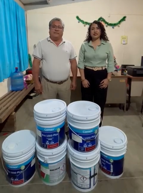 De manera paralela, el también gestor social cumplió su compromiso con la educación, al realizar la donación de pintura para la escuela primaria Abraham Castellanos, acción que permitirá mejorar las condiciones de los salones de clase y dignificar los espacios donde se forman niñas y niños.