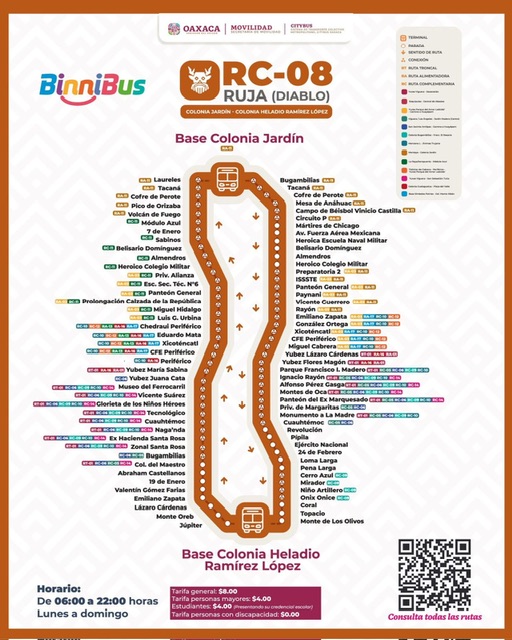Oaxaca de Juárez, Oax., 17 de febrero de 2026.- El Sistema de Transporte Colectivo Metropolitano BinniBus Oaxaca puso en marcha la nueva ruta RC08 “Ruja”, que significa Diablo en lengua afro de la variante de La Llanada; con la cual suman 19 en operación, las cuales transforman la conectividad y movilidad en la capital del estado.