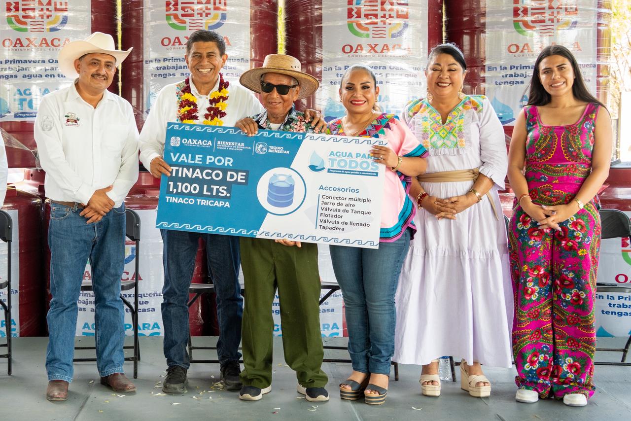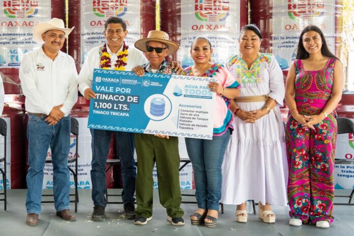 El Gobernador Salomón Jara Cruz entregó 500 tinacos de 1,100 litros del programa “Agua para Todas y Todos” en San Pedro Pochutla, para que sus habitantes puedan almacenar el vital líquido durante la temporada de estiaje.