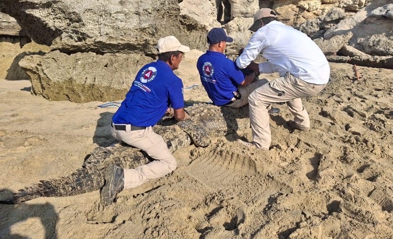 El ejemplar fue detectado en inmediaciones de playa, lo que activó un operativo preventivo para evitar riesgos entre visitantes y pobladores del municipio de San Pedro Mixtepec. Las autoridades desplegaron personal especializado que realizó la captura bajo protocolos de seguridad y manejo de fauna silvestre.