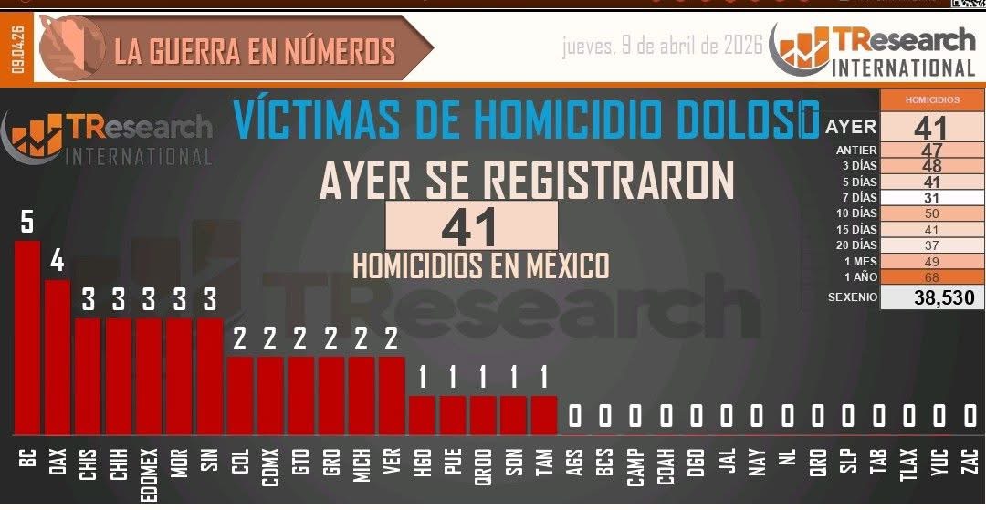 En la última jornada se contabilizaron 41 homicidios en el país y los estados más violentos fueron Baja California Norte y Oaxaca.