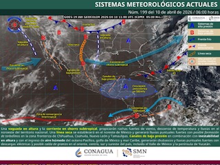 Estas condiciones son ocasionadas por la presencia de un canal de baja presión ubicado sobre el sureste de México, en interacción con la afluencia de humedad proveniente del Océano Pacífico.