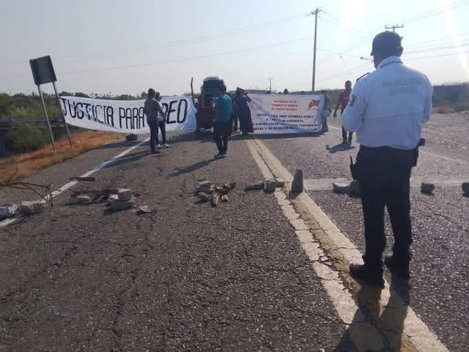 Pobladores de la comunidad de Puente Madera mantienen un bloqueo la mañana de este miércoles sobre la carretera federal 185 Transístmica, en el Istmo de Tehuantepec, para exigir justicia por la muerte de un joven ocurrida hace un año en ese mismo tramo.