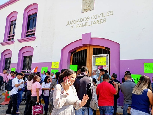 Trabajadores afiliados al Sindicato de Trabajadores de los Poderes del Estado e Instituciones Descentralizadas de Carácter Estatal (STPEIDCEO) tomaron este miércoles los Juzgados Civiles del Tribunal Superior de Justicia del Estado, en protesta por presuntas afectaciones a sus percepciones salariales.