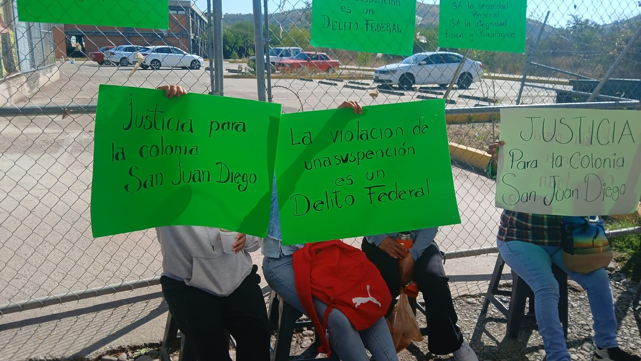 Durante la protesta, los inconformes exhibieron cartulinas con consignas como “Justicia para la colonia San Juan Diego” y “Alto a la corrupción en la Vicefiscalía”, en referencia a presuntas omisiones de la Vicefiscalía Regional de la Mixteca en la atención del caso.